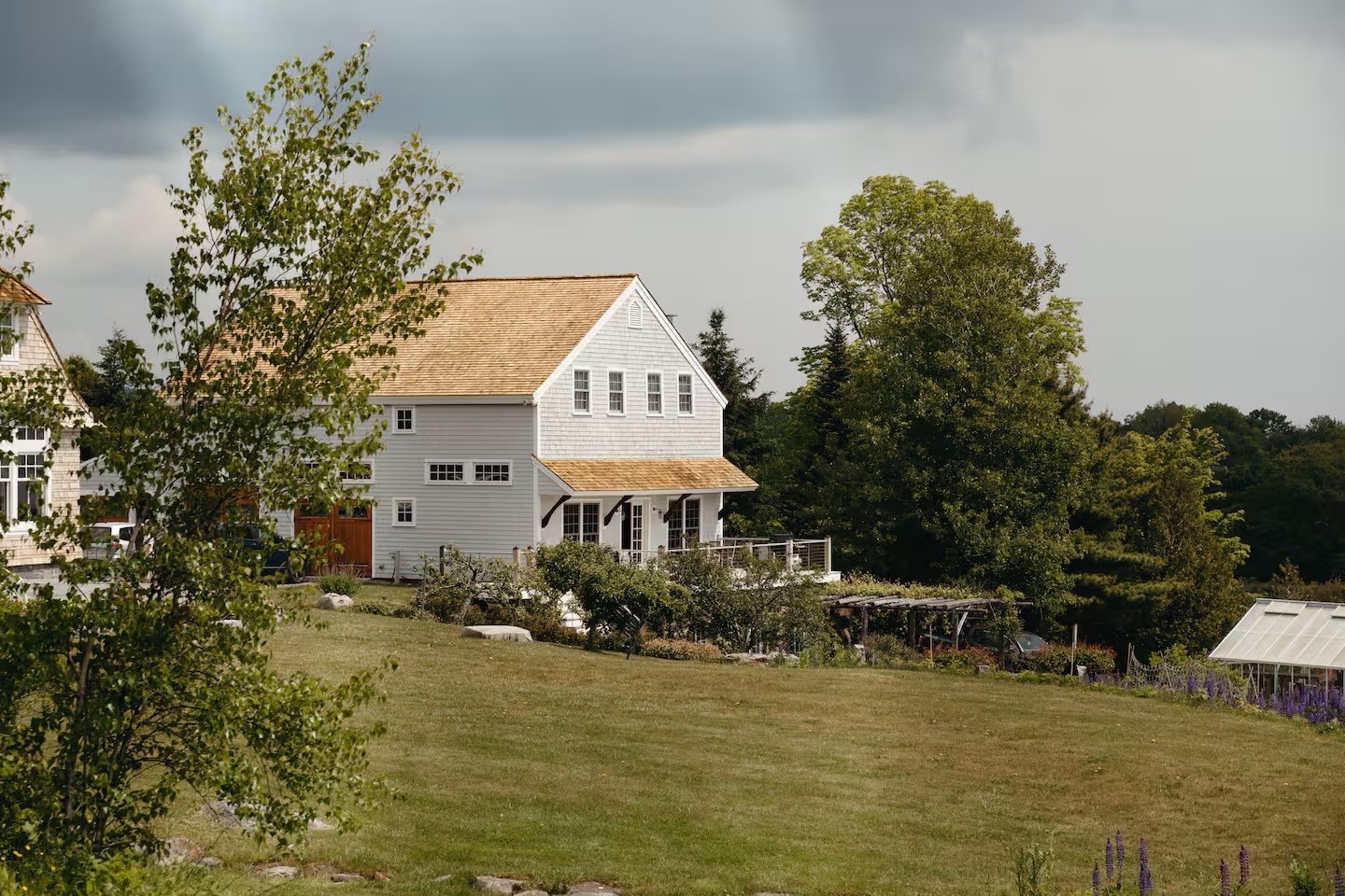 This elegant and comfortable apartment in situated in an antique post & beam barn that sits perched above rolling fields and vegetable gardens looking out over the Penobscot Bay. From the porch, guests can watch the local lobsterman pick up traps and see schooners weaving through the islands. The apartment sits over Salt Water Farm Cooking School, a small recreational cooking school for home cooks.